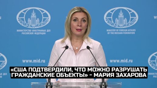 «США подтвердили, что можно разрушать гражданские объекты» - Мария Захарова