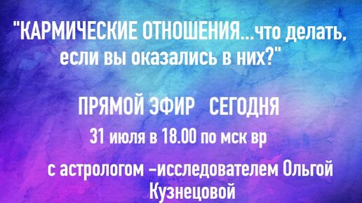 "Кармические отношения".Запись прямого эфира с астрологом -исследователем Ольгой Кузнецовой