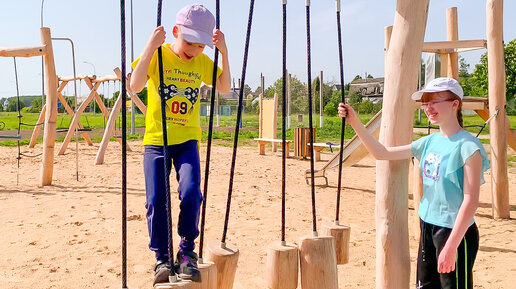 Настя и Вика на ДЕТСКОЙ ПЛОЩАДКЕ / ВЕРЕВОЧНЫЙ ГОРОДОК для детей / ПОЛОСА ПРЕПЯТСТВИЙ