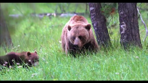 БОЛЬШАЯ МЕДВЕДИЦА С МЕДВЕЖАТАМИ В ПОИСКАХ ВКУСНОГО БЕЛКА