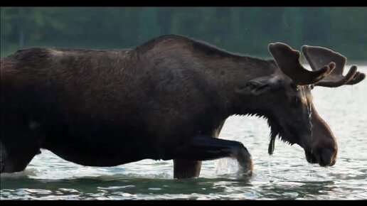 ОГРОМНЫЙ БЫК ЛОСЬ КОРМИТЬСЯ НА ОЗЕРЕ