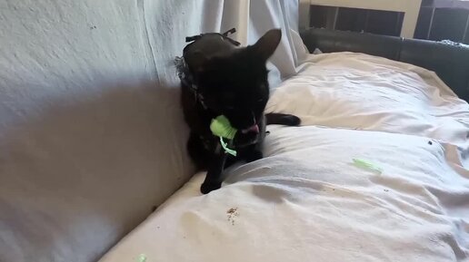 Кошечка Мурка решила снять с лапки все самостоятельно
