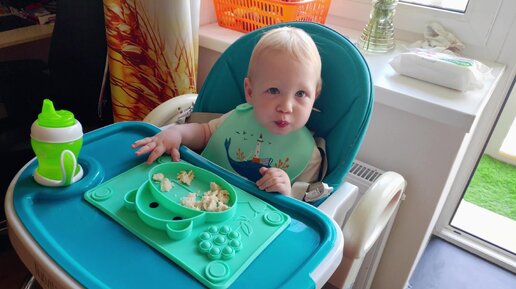 Ребёнок ест паровые котлеты из курицы. Очень вкусно!