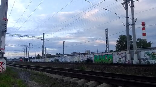 ЭП1-184. Отправление со станции с пассажирским на север. Скрип колёсных пар в кривой. Петрозаводск. Идёт в сторону Товарной станции.
