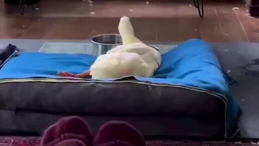 Уточка лежит на диване, болтает лапками и смотрит мультики / И всем хорошего настроения
