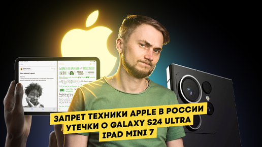Запрет техники Apple в России, утечки о Galaxy S24 Ultra и iPad Mini 7. Главные новости технологий!