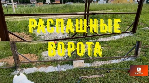 Распашные ворота на участке с уклоном.
