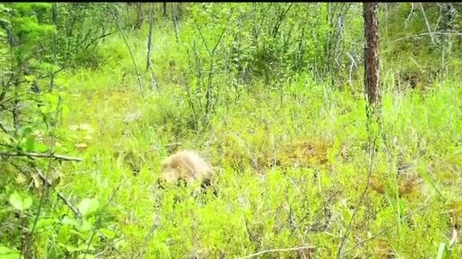 Медвежонок нашел фотоловушку в тайге Якутии и решил с ней поиграть