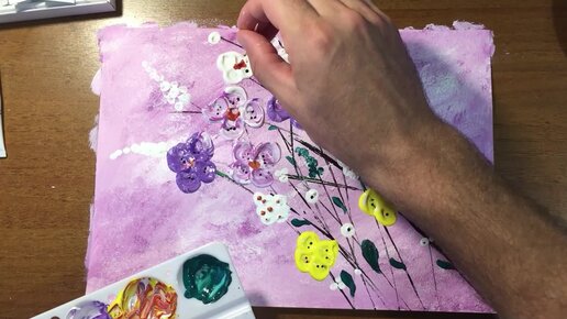 Поэтапная техника рисования ложкой, рисунок цветов акрилом