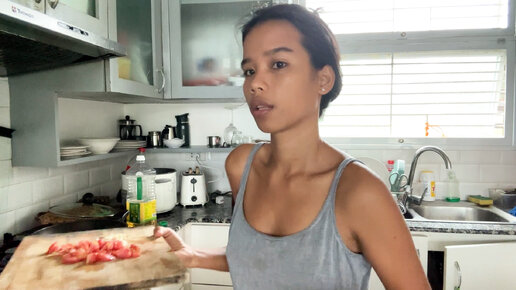 Найви готовит наш классический завтрак и рассказывает рецепт, рассказывает про дорогущий филиппинский лук