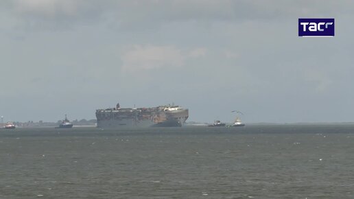 Загоревшееся у берегов Нидерландов судно доставили в порт Эмсхавен