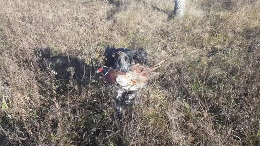 Первая подача фазана щенком спаниеля
