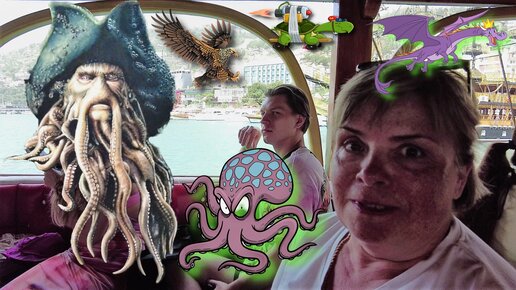Нас Догоняют: Орёл Черепаха Дракон Осьминог Дэйви Джонс на Пиратской Яхте в Турции / Алания смотрите на ютуб