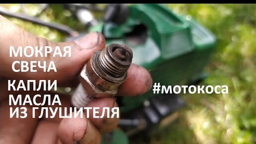 #Мотокоса. Мокрая свеча зажигания . Капает масло из глушителя. Долго не проработает 100%