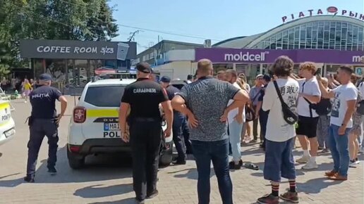 В молдавском городе Бельцы полицейские забрызгали лицо мужчины газом из баллончика возле палатки оппозиционной партии "Возрождение"