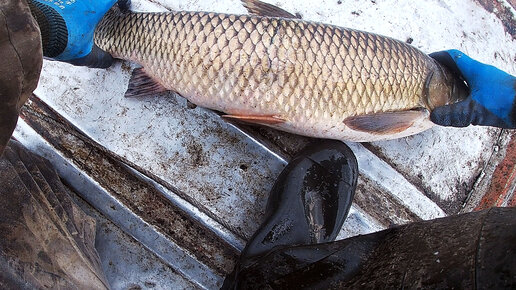 Рыбалка сетями. Огромные рыбины рвут сети. Поймал большого амура