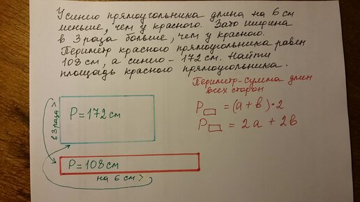 Математика 4 - 6 класс. Задача от Миши. Периметр и площадь прямоугольника.
