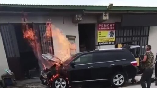 В Махачкале загорелась машина, есть пострадавший. Причина возгорания из-за взорвавшегося аккумулятора