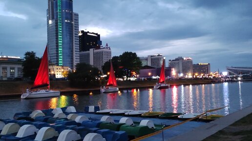 Алые Паруса плывут по реке Свислочь центре в Минска -невероятно красиво и романтично