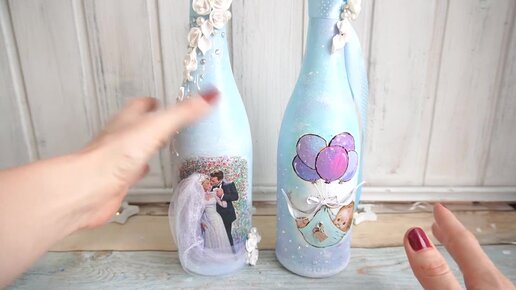 Свадебное шампанское с объемным декором мастер класс _ Декор свадебных бутылок своими руками
