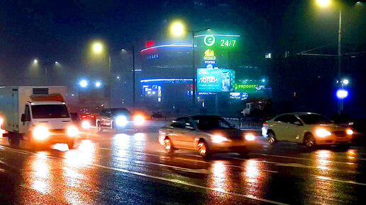 Футаж Туман в Городе. Видео для Монтажа Город в Тумане, Автомобили, Транспорт, Свет Фар Сквозь Туман