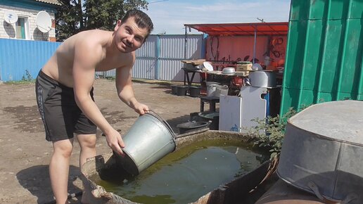 Нашёл мотылей в чане. Выливаю воду из чана