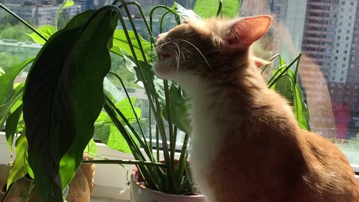 Рыжее хулиганье! Средь бела дня обкусала весь цветок!