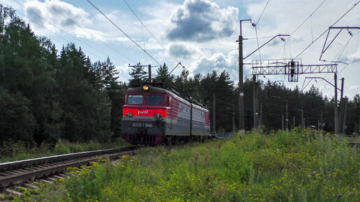 Электровоз ВЛ10У-646 с грузовыми контейнерными платформами, 142 км, БМО ж/д. 25 июля 2023 г.