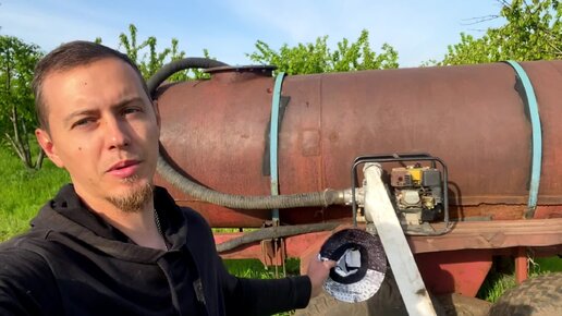 Показываю с помощью чего я перекачиваю воду из бочки в опрыскиватель
