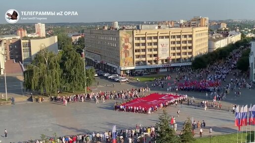 В Орле на площади им. Ленина развернули огромный дубликат знамени Победы