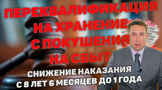 Переквалификация с покушения на сбыт на хранение. Снижение наказания с 8 лет 6 месяцев до 1 года.