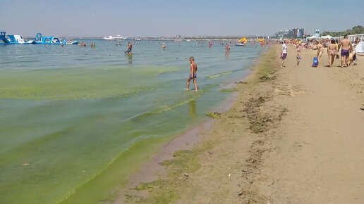 В Анапе +35, море вновь превратилось в болото, выбросило водоросли. Отдыхающих мало. 5 августа 2023.