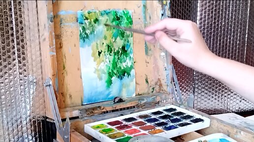 Река - поэтапный рисунок акварелью