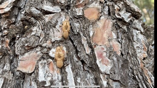 Мертвые жуки на деревьях. Цикады в Турции (нимфы или личинки цикад)