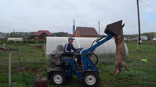 Мой мини трактор помогает при забои свиньи ‼️