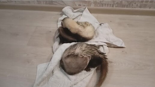 ХОРЬКИ СУШАТСЯ ПОСЛЕ ДУША. НА УЛИЦЕ ЖАРА И ПУШИСТИКАМ ТОЖЕ ЖАРКО.