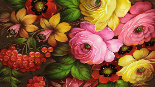 Рисуем цветы на Жостовском кованом подносе. Букет на коричневом фоне. Мастер-класс по живописи маслом от Ларисы Гончаровой из Жостово