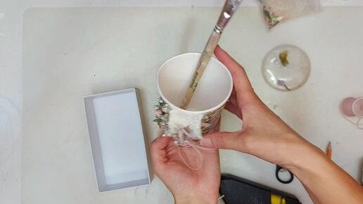 Декор бумажного стакана для карандашей в технике скрапбукинг