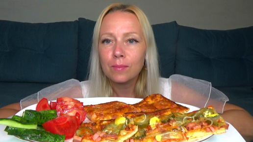Домашняя пицца с огурцами бочковыми, вкуснее не придумаешь. Овощи.мукбанг.