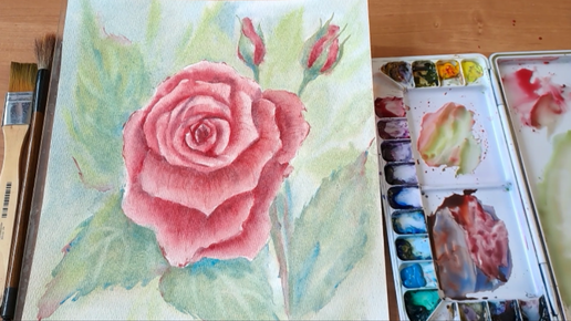 Рисуем красную розу акварелью. Рисуем красками вместе.