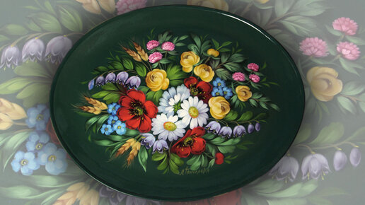 Выправка на Кованом Жостовском подносе. Букет на зеленом фоне. Мастер-класс от Ларисы Гончаровой из Жостово
