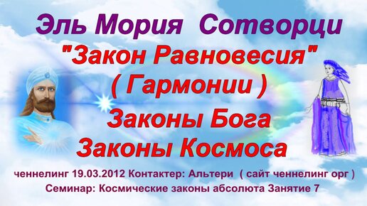 Ченнелинг Эль Мория, Сотворци "Закон Равновесия ( Гармонии ). Законы Бога. Семинар Космические законы абсолюта. Занятие 719.03.2012