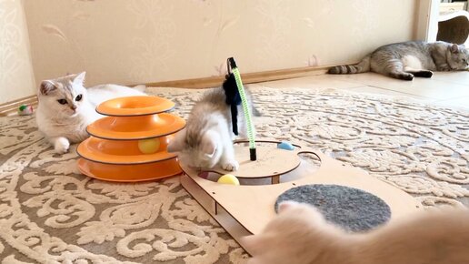 Кошка Кристалл присматривает за играющими котятами кошки Кайли.