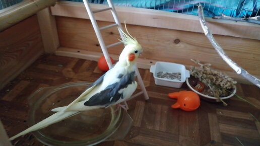 Ура! Карлуша понял для чего тарелка с водой. Зашёл и немного искупался.