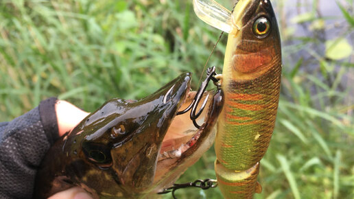 В такую погоду щука клюет на все. Лягушка и воблер. Рыбалка на реке летом