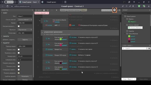 видео урок по construct 3 по управлению движения времени в игре и другое часть вторая.