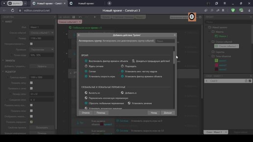 видео урок по construct 3 по управлению движения времени в игре и другое часть третья.