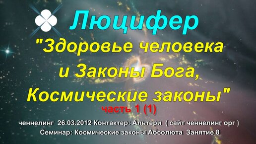 Ченнелинг Люцифер "Законы Бога и здоровье человека" Семинар Космические законы Абсолюта. Занятие 8 26.03.2012 часть 1 (1)