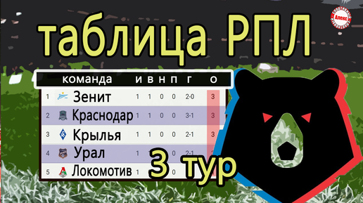 Чемпионат России по футболу (РПЛ). 3 тур. Результаты. Расписание. Таблица.