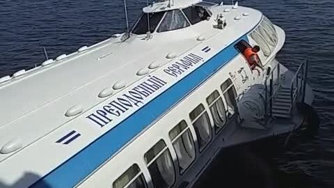 Слаженная работа двух экипажей! "Метеор" отшвартовывается от теплохода в Ладожском озере.